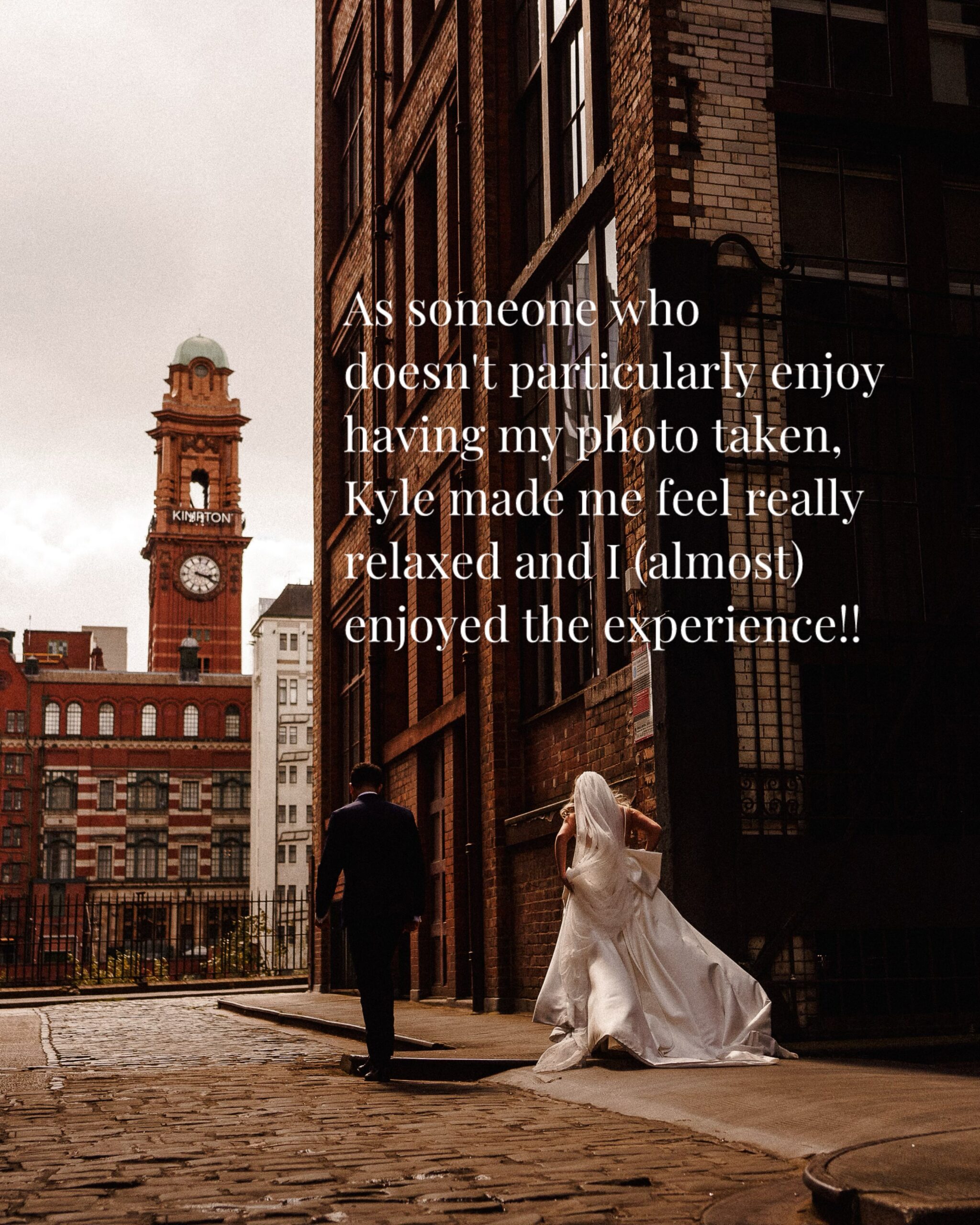 Hi, I’m Kyle. Although I’m a wedding photographer based in Manchester, I have been lucky enough to work with the most amazing wedding suppliers and shoot at some of the best venues across the UK. Whether you are tying the knot in an urban, city centre location or a more rural setting, I’d love to hear all about your plans.