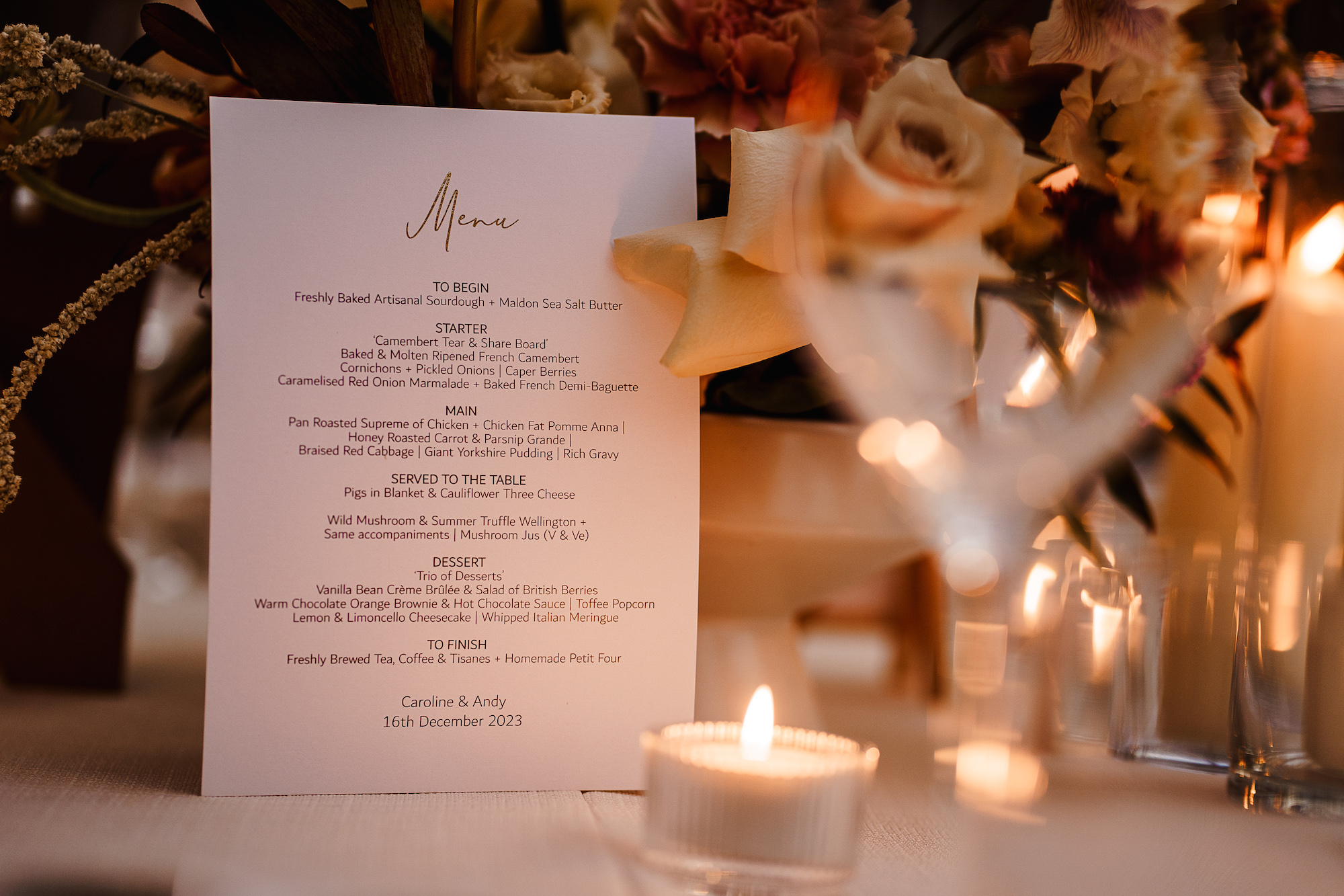 Although December weddings are often synonymous with colder weather, Caroline and Andy’s celebration felt like the coziest of gatherings. The warmth of the venue and the joyful energy of everyone in attendance made the cold weather outside feel miles away. The wintery chill was something we embraced, with Caroline’s soft fur stole adding the perfect touch of elegance to her wedding day look. And let’s not forget the stunning winter florals that adorned the venue, with their rich tones of burgundy, deep greens, and ivory—making the entire space feel festive and seasonal.