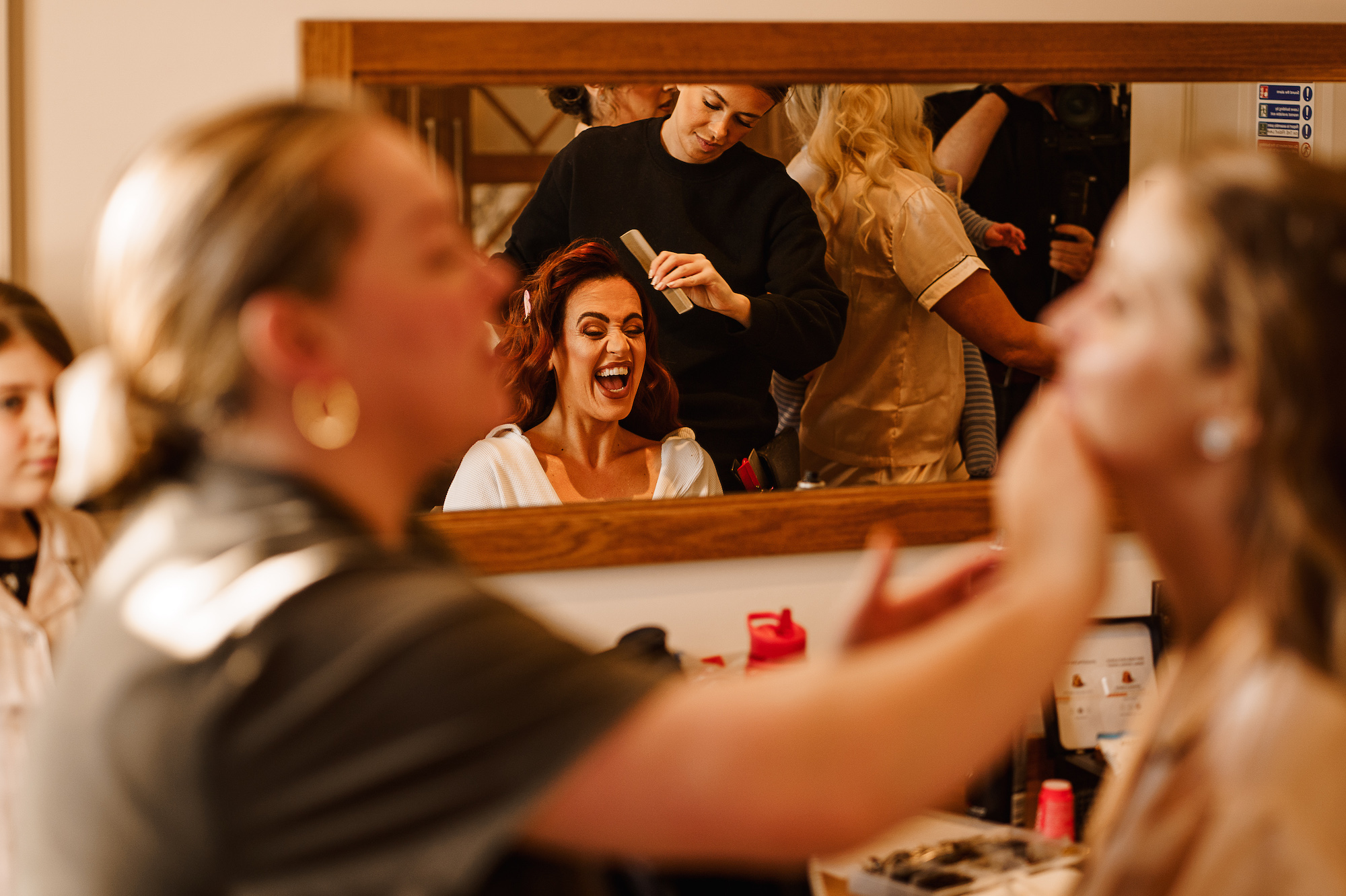 What stood out most was how confident and comfortable Caroline looked in her own skin. A good bridal hair and makeup team doesn’t just make you look beautiful—they help you feel beautiful too, and it was clear that Caroline was brimming with both. I always make it a point to capture the small details that make the bride feel special, from the moment the makeup artist adds the finishing touches to the soft flicker of excitement as the bride admires herself in the mirror.